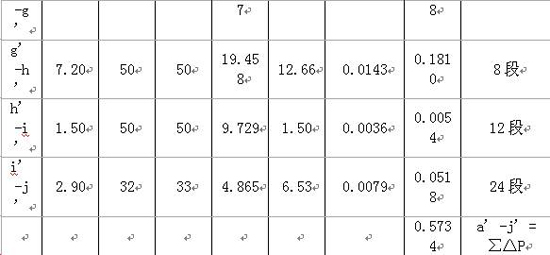 吊頂層系統管道阻力損失計算結果